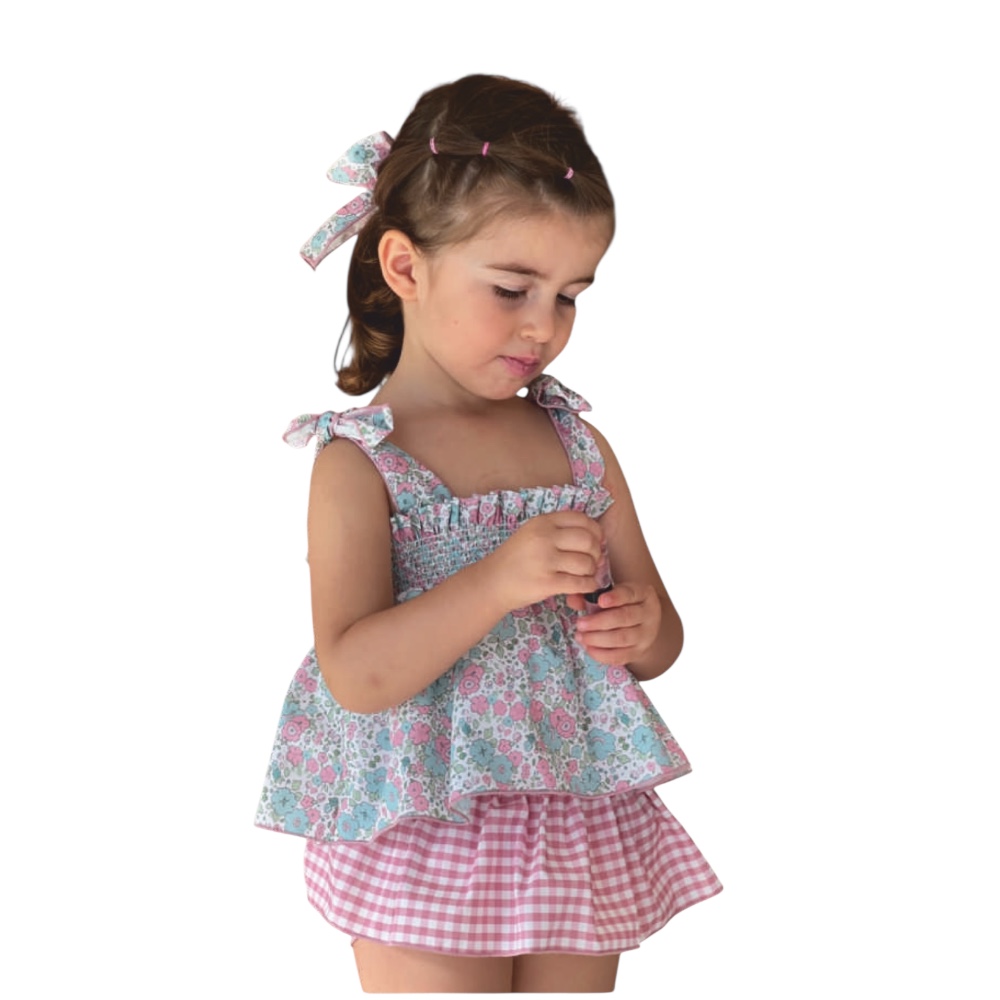 El Conjunto 2P Emili para Niña está en color rosa y verde con falda volante con cuadro vichy rosa aporta un toque alegre, perfecto para los días de primavera – verano. Además, su diseño encantador hace que sea una prenda ideal para cualquier ocasión, desde paseos hasta reuniones familiares. Disponible en varias tallas, este conjunto se adapta perfectamente al cuerpo de tu pequeña. Su ajuste cómodo permite que se mueva con total libertad, favoreciendo la movilidad y los primeros juegos sin restricciones.